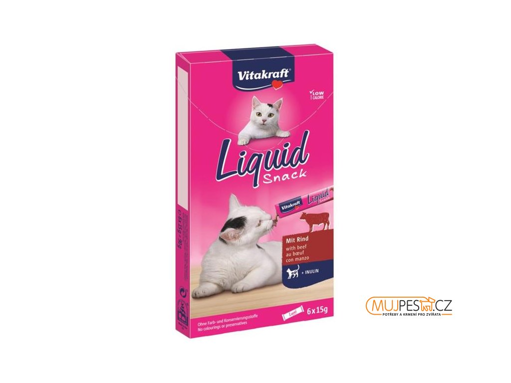 Vitakraft snack cat Liguid hovězí + inulin 6 x 15 g