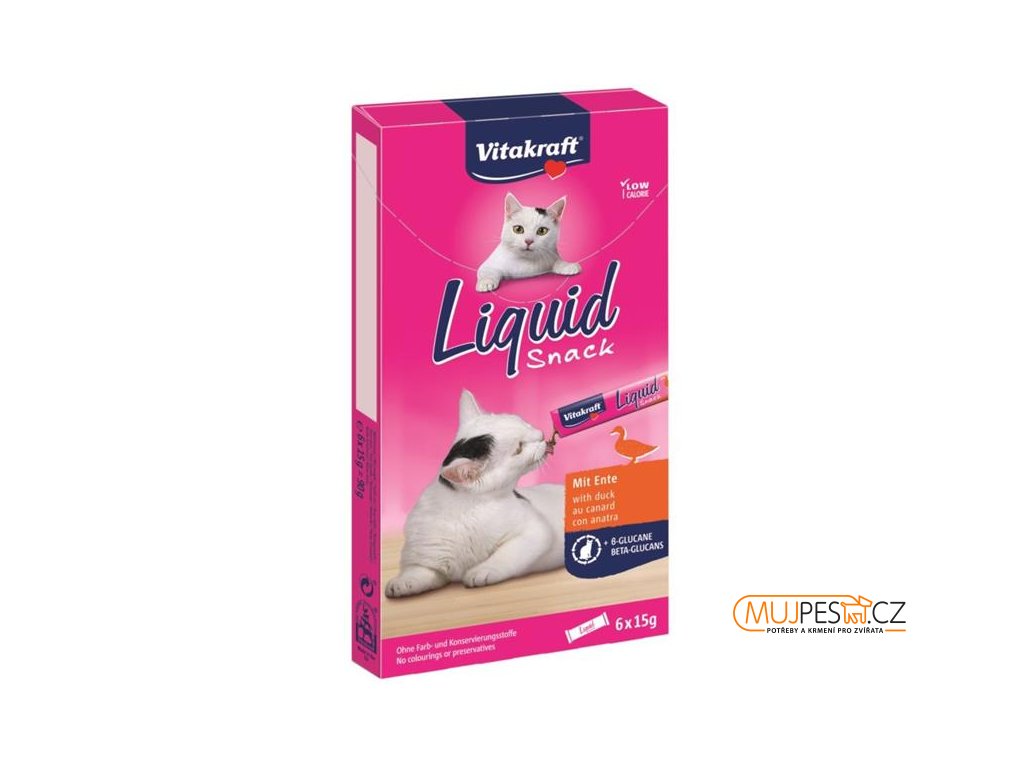 Vitakraft snack cat Liquid je lahodnou pochoutkou s kachním masem a ß - glukanem. Balení obsahuje 6 ks.