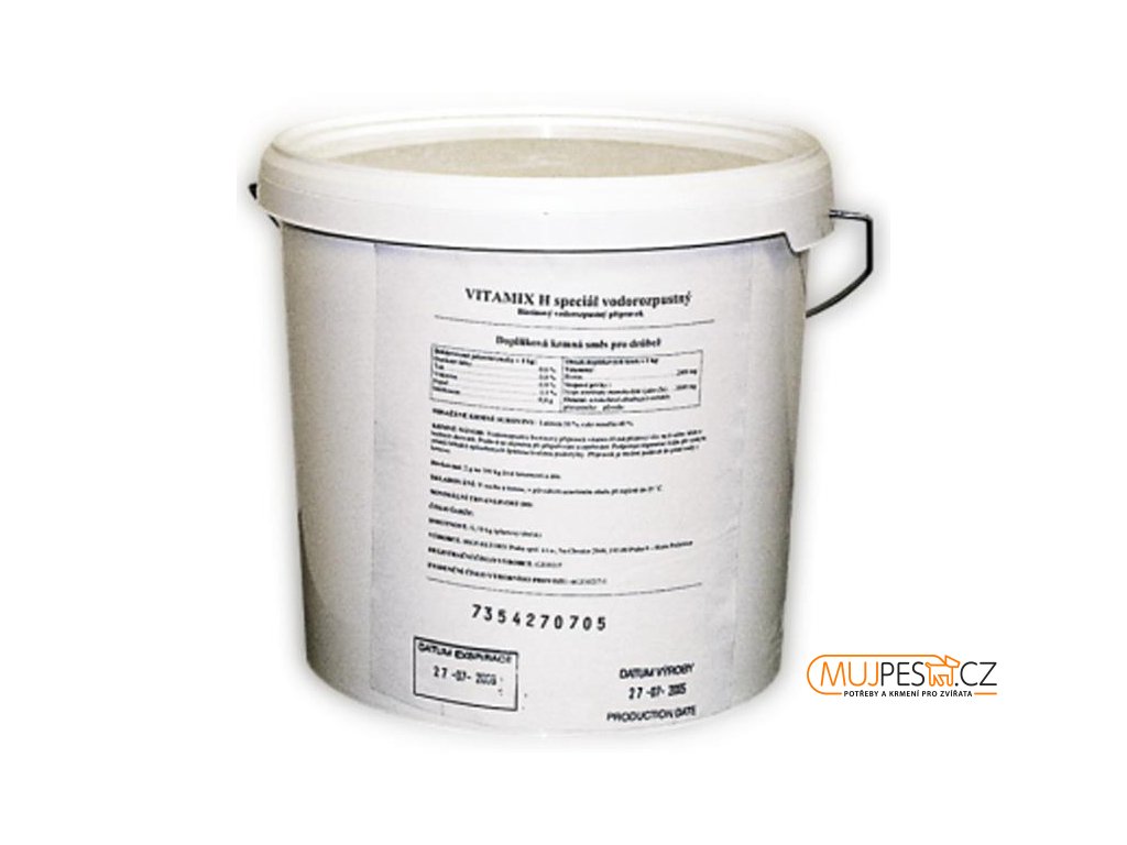 Podává se zejména při přepeřování a opeřování. VITAMIX H má pozitivní vliv na kvalitu kůže a kožních derivátů. Podporuje regeneraci kůže při výskytu otlaků běháků způsobených špatnou kvalitou podestýlky.