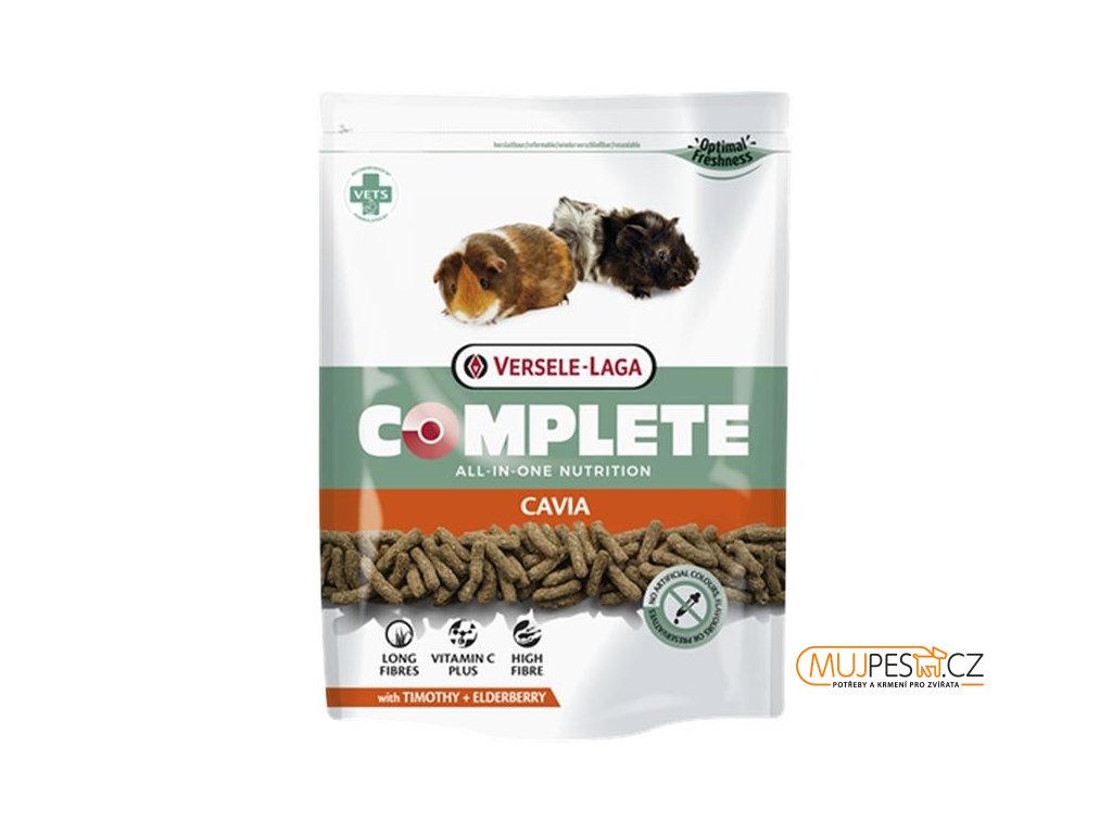 Cavia Complete je 100% extrudované jednosložkové krmivo pro morčata, které je bohaté na vlákninu z různých druhů sena. Toto krmivo podporuje přirozenou péči o zuby a vyváženou střevní mikroflóru. Obsahuje 1 000 mg/kg stabilního vitaminu C a vlákninu z celých kousků bojínkového sena. Dále je obohaceno o bylinky, plody černého bezu a různé druhy trav. Krmivo neobsahuje obiloviny.
