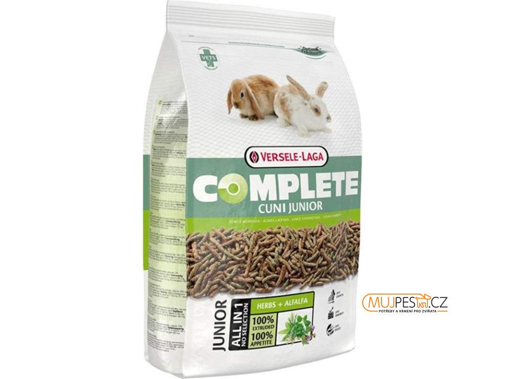 Cuni Junior Complete je kompletní krmivo pro mladé zakrslé králíky do 6 až 8 měsíců věku. Toto 100% extrudované jednosložkové krmivo je bohaté na bílkoviny a obsahuje vitaminy, prebiotika a směs bylin, které podporují trávení, růst a vyváženou střevní mikroflóru. Obsahuje vlákninu z celých kousků vojtěškového sena a je doplněno o fenykl, meduňku a mátu. Krmivo neobsahuje obiloviny.