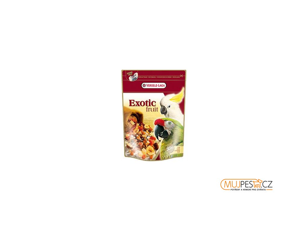 Krmná směs různých druhů ovoce (např. papája, ananas, meruňky, …), zrnin, semen a ořechů.