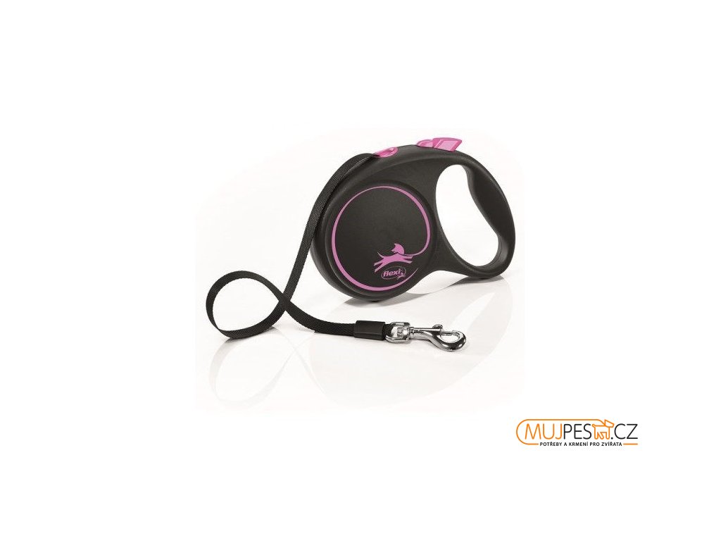 Vodítko FLEXI Black Design M pásek 5m/25kg růžová NEW: -