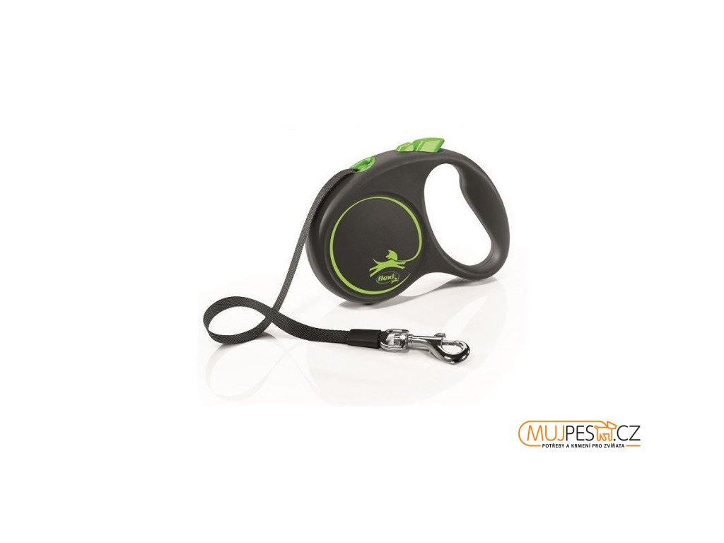 Vodítko FLEXI Black Design M pásek 5m/25kg zelená NEW: -