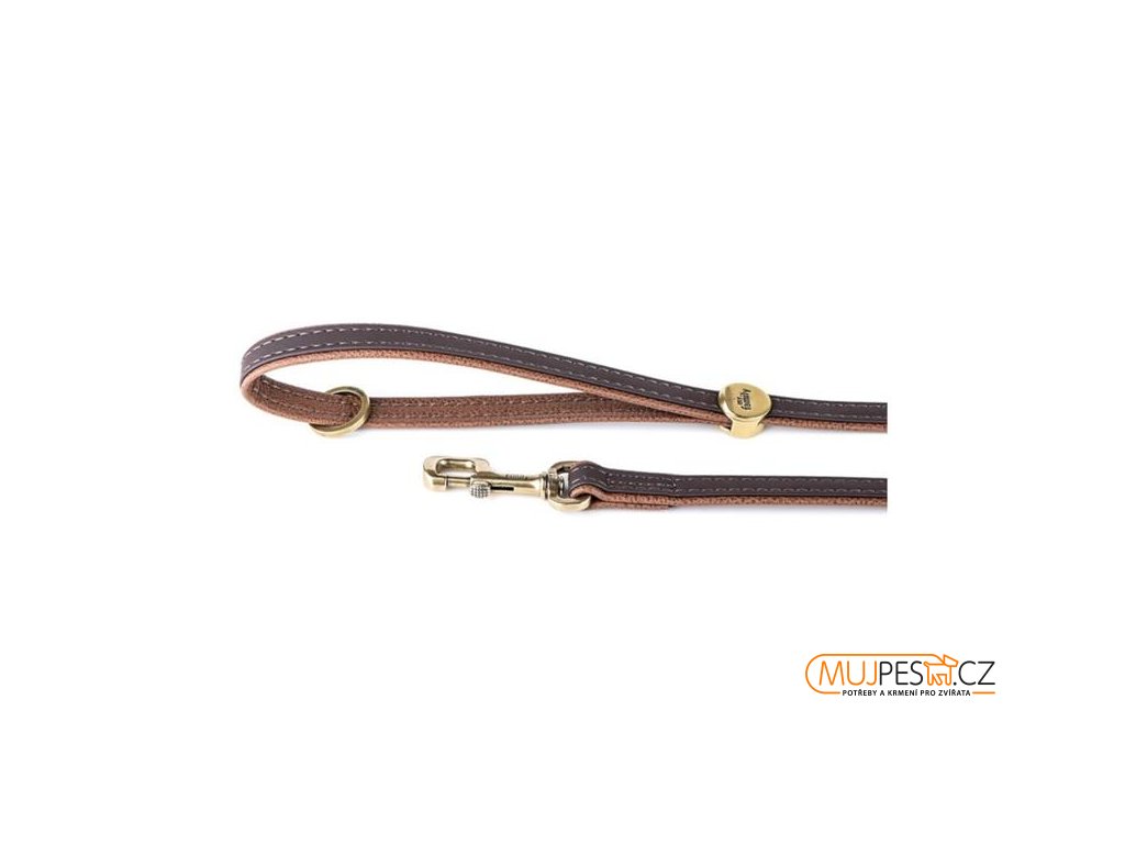 Vodítko pro psy z kolekce Bilbao z jemně zpracované hnědé kůže s povrchovou úpravou z anglické mosazi. Vodítko je vyrobeno z kvalitního materiálu.