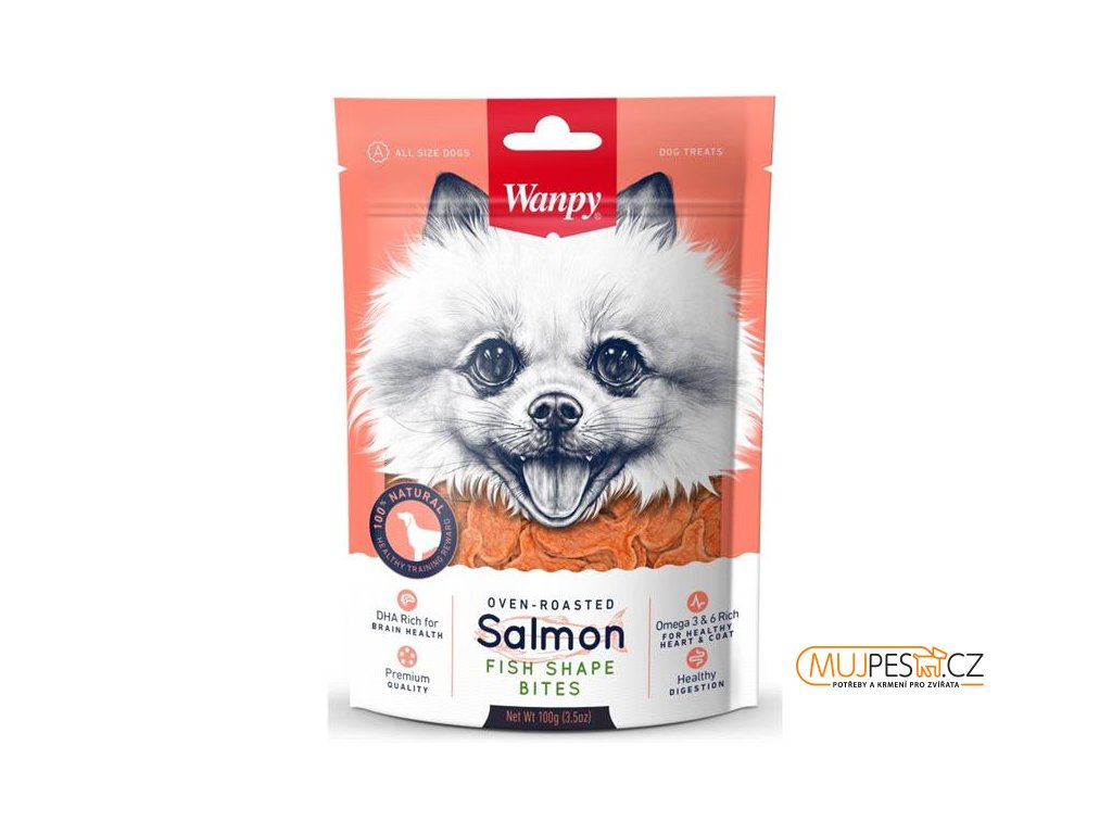 Lososové kousky, ideální jako odměna při výcviku (v kapse se nedrolí) nebo chutný pamlsek pro vašeho psa.