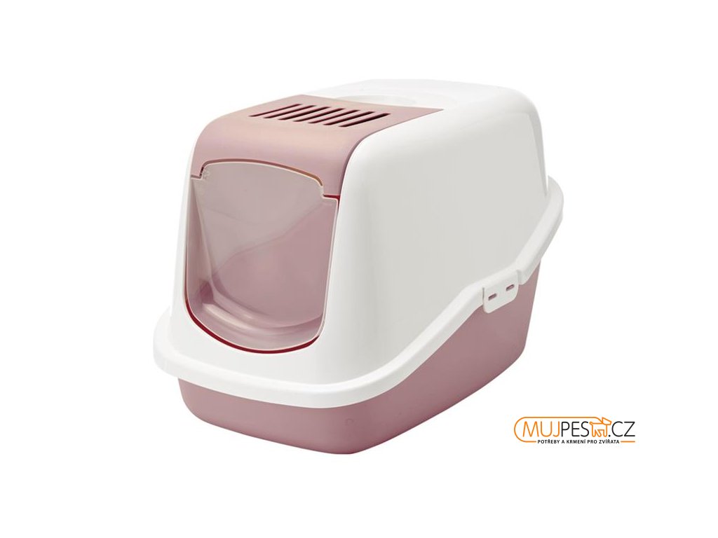 Krytá toaleta SAVIC Nestor má spodní nádobu s extra vysokým okrajem v zadní části. Je díky tomu vhodná i pro kočky, které vykonávají potřebu vestoje. Dvoubarevný kryt s výklopným úchytem pro přenášení se ke spodní nádobě připevňuje pomocí dvou klipsů. Přední část krytu s širokými dvířky lze vyklopit, abyste při běžném vybíraní nečistot nemuseli pokaždé snímat víko. Ve stropě krytu je umístěn filtr s aktivním uhlím, který zabraňuje unikání zápachu z WC. Toaleta Nestor se výborně hodí i pro navykání bojácných koček či koťat na používání krytého záchodu – kryt jim můžete nechat zpočátku vyklopený.