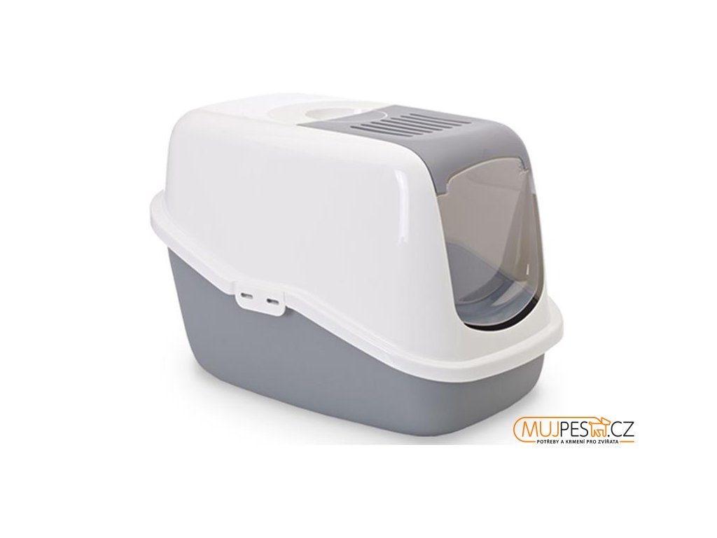 Krytá toaleta SAVIC Nestor má spodní nádobu s extra vysokým okrajem v zadní části. Je díky tomu vhodná i pro kočky, které vykonávají potřebu vestoje. Dvoubarevný kryt s výklopným úchytem pro přenášení se ke spodní nádobě připevňuje pomocí dvou klipsů. Přední část krytu s širokými dvířky lze vyklopit, abyste při běžném vybíraní nečistot nemuseli pokaždé snímat víko. Ve stropě krytu je umístěn filtr s aktivním uhlím, který zabraňuje unikání zápachu z WC. Toaleta Nestor se výborně hodí i pro navykání bojácných koček či koťat na používání krytého záchodu – kryt jim můžete nechat zpočátku vyklopený.