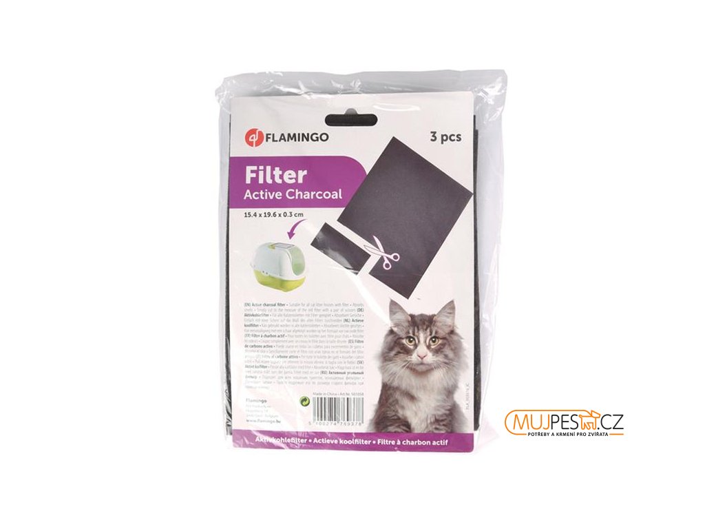 Univerzální filtry k toaletám Flamingo. Balení obsahuje 3 ks. Filtry se dodávají jako velký obdélník, který je možno použít i pro ostatní typy toalet (jednoduše nastříháte na danou velikost). Rozměr jednoho filtru je 15,4 x 20 cm.