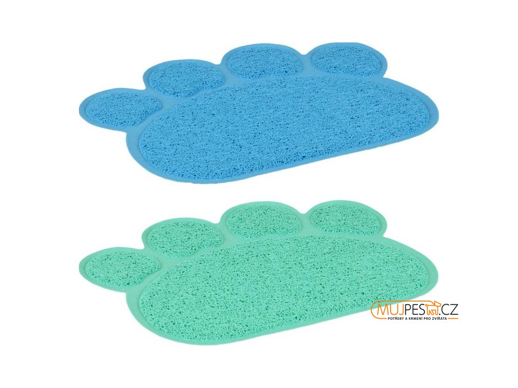 Krásná předložka před kočičí toaletku nebo pod misky s jídlem. Design zvířecí tlapky s veselým barevným provedením zkrášlí a pomůže udržet váš domov čistší.