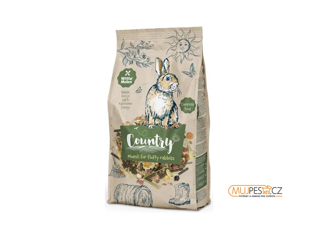 Společnost Witte Molen vyrábí krmiva již od roku 1740 a tato směs – WitteMolen Country pro (zakrslé) králíky – představuje v jejich portfoliu návrat ke klasickým krmivům. Jde o kvalitní, vyvážené krmivo s na vlákninu bohatými vojtěškovými (alfalfa) stébly a bylinkami. Kombinace těch nejlepších přírodních surovin sestavená na základě odborných znalostí o potřebách králíků zaručí vašemu drobnému mazlíkovi kvalitní stravu, na kterou se vy i on můžete spolehnout.