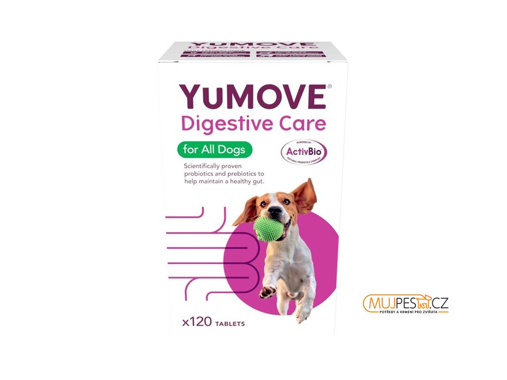 YuMOVE Digestive Care je přírodní doplňkové krmivo s probiotiky a prebiotiky určené pro psy s citlivým zažíváním. Tablety obsahují unikátní komplex prebiotik a probiotických bakterií vyvinutý tak, aby podporoval zdravé fungování trávicího traktu psa.