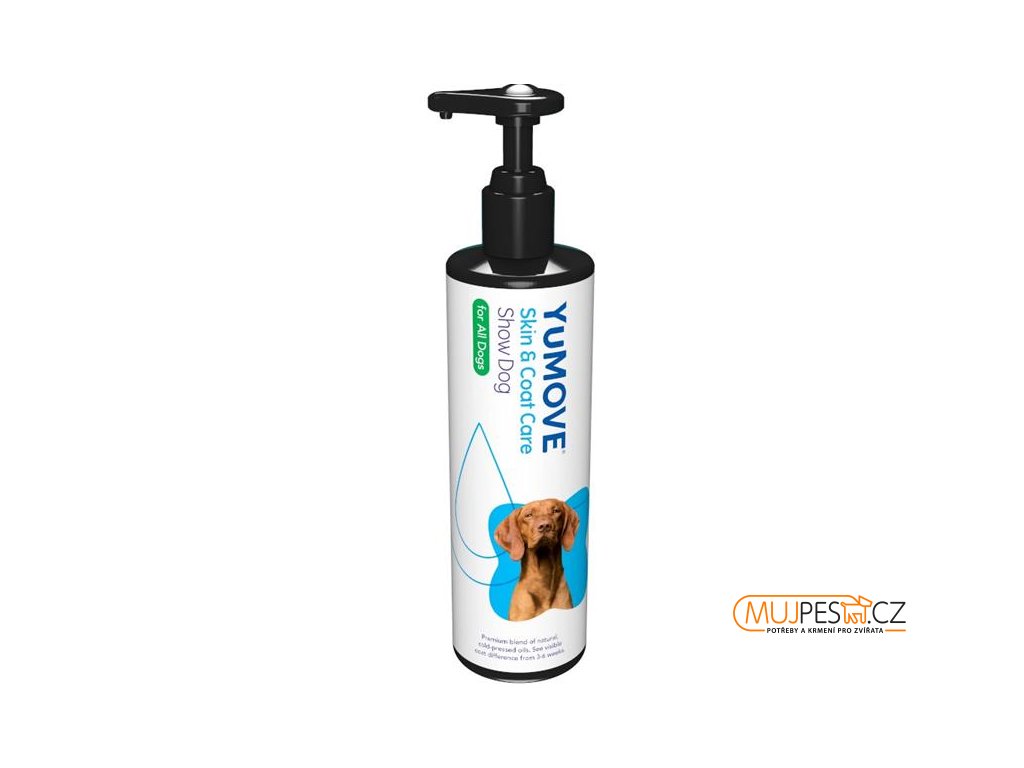 YuMOVE Skin & Coat Care Show Dog je přírodní doplňkové krmivo ve formě oleje pro psy, které podporuje kondici kůže, zlepšuje kvalitu srsti nejen u výstavních jedinců a prospívá zraku. Díky vyvážené směsi vysoce kvalitních omega-3 a omega-6 mastných kyselin v kombinaci s vitamínem E budou výsledky viditelné už po 3–6 týdnech pravidelného používání.