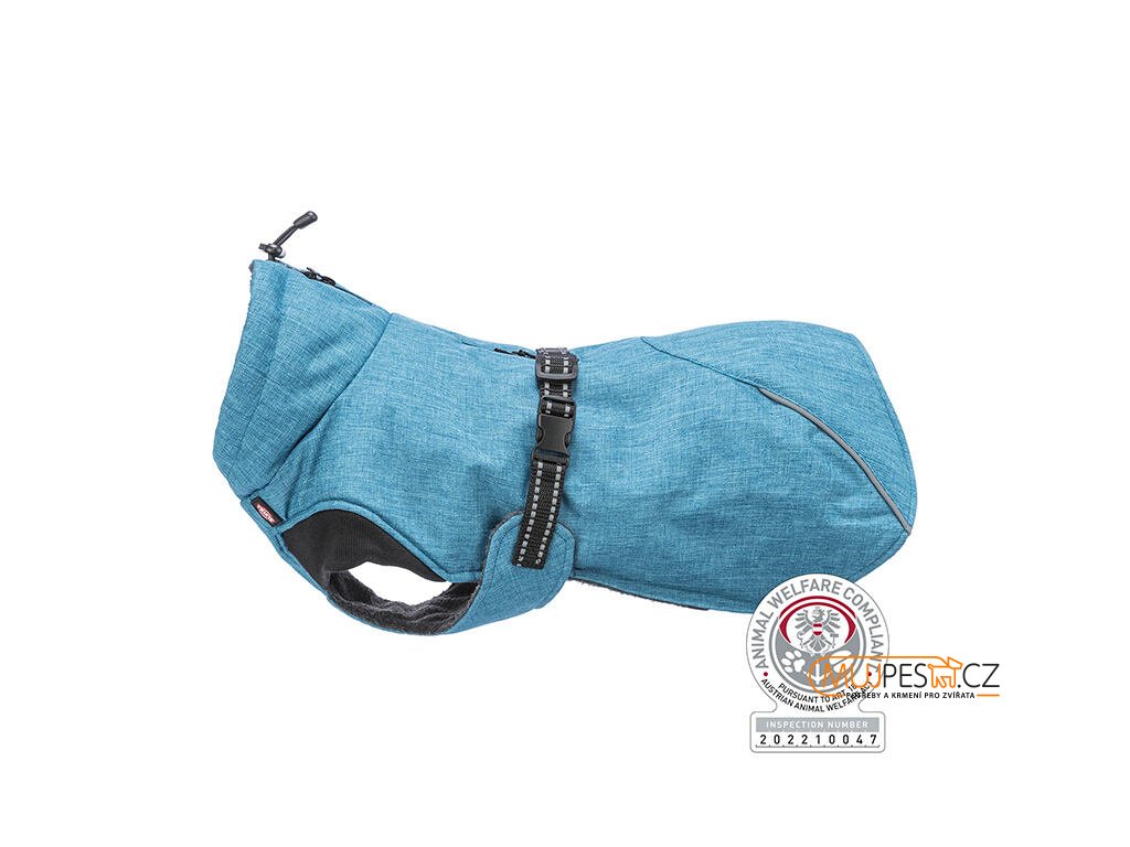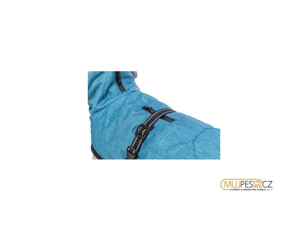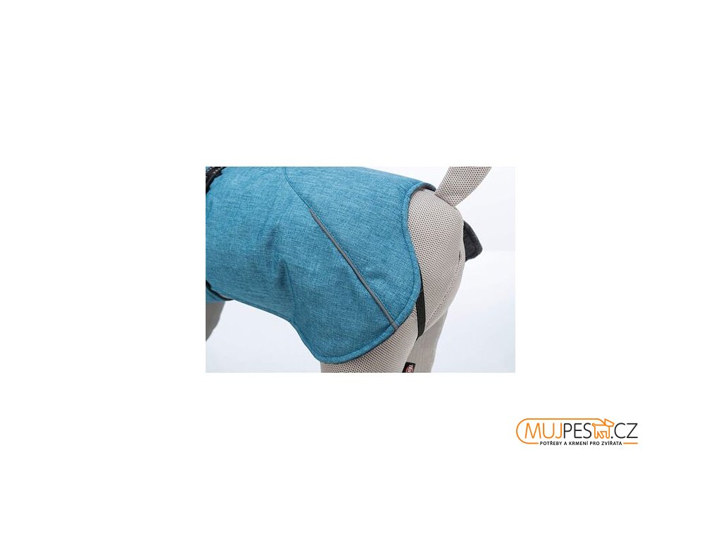 Vysoce kvalitní voděodolný a větru odolný materiál poskytuje spolehlivou ochranu před nepřízní počasí. Extra vysoký límec se stahovací šňůrkou chrání krk psa před chladem a větrem.