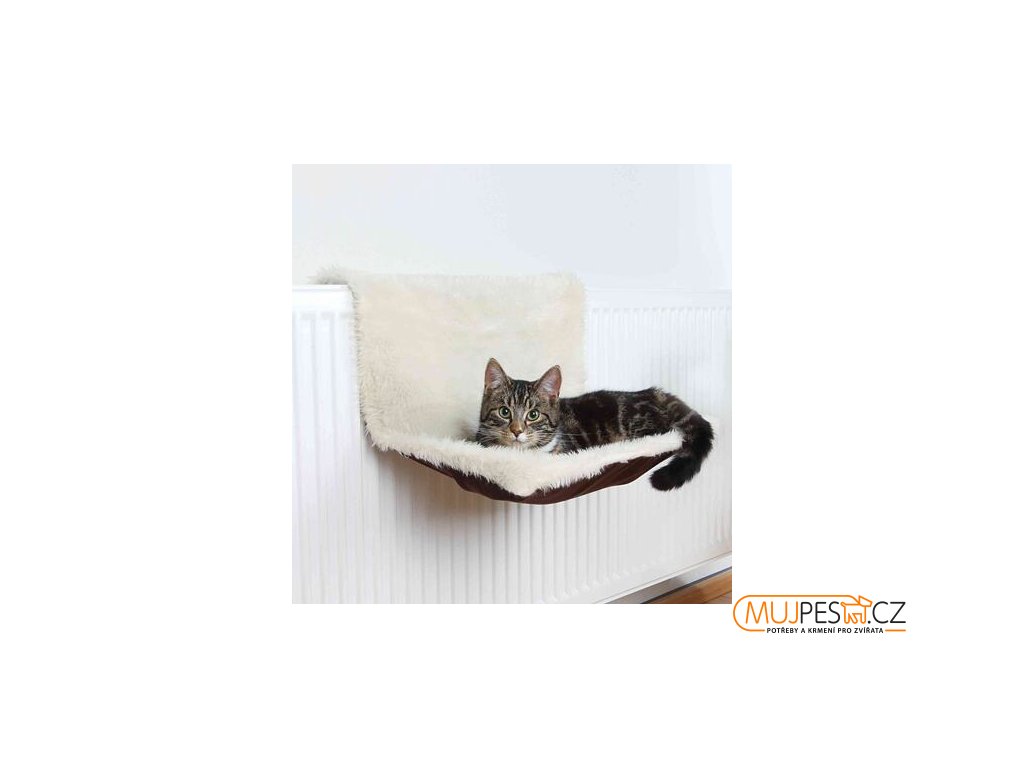 Závěsné lůžko na topení se semišovým vzhledem v barvě béžová/hnědá o rozměrech 45x26x31 cm poskytuje komfortní místo pro odpočinek Vaší kočky.