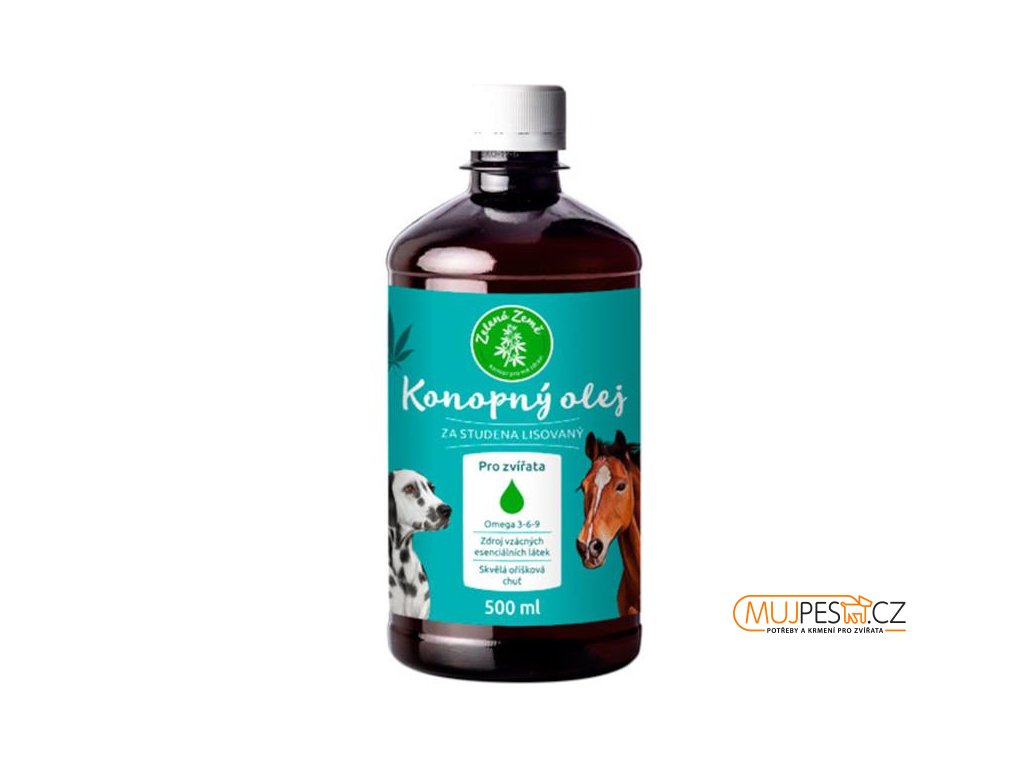 Konopny´ olej poma´ha´ udrzˇovat zdravou ku°zˇi, podporuje zdravi´ a vitalitu srsti, harmonizuje teˇlesne´ procesy a ti´m podporuje prˇirozenou obranyschopnost. Zároveň příznivě působí během užívání CBD pro zvířata – podporuje výsledný efekt. U psů je velmi oblíbený do BARF krmení, a to zejména jako prostředek pro podporu imunitního systému a zmírnění projevů alergií. Podporuje trávicí pochody a správné vstřebávání potravy i u jedinců s citlivějším zažíváním. U koní oceníte zejména to, že jde o olej hypoalergenní a vhodný k užívání během letních vyrážek, na suchou kůži či pro koně „muchaře“. Podporuje vitalitu a imunitu koní a je skvělým zdrojem energie.