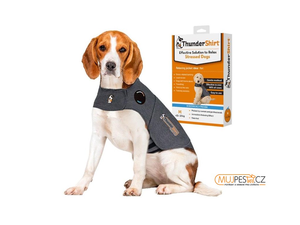 vvSpeciální vesta ThunderShirt po nasazení vyvíjí na tělo vašeho psího mazlíčka jemný a konstantní tlak. Příjemný pocit bezpečí pomáhá psa uklidnit podobně jako zavinovačka uklidňuje dítě. Jde o skvělého pomocníka pro zvládání stresových situací, jako je návštěva veterináře, cestování dopravními prostředky, bouřka, ohňostroj, ale i ponechání o samotě.