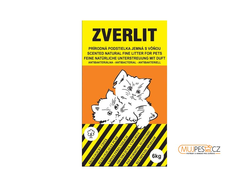 Zverlit jemný je přírodní stelivo pro kočky. Po použití kočkou se vytvoří hrudka, kterou lze likvidovat v domovních odpadech, nebo výhodně využít v záhradním kompostě.